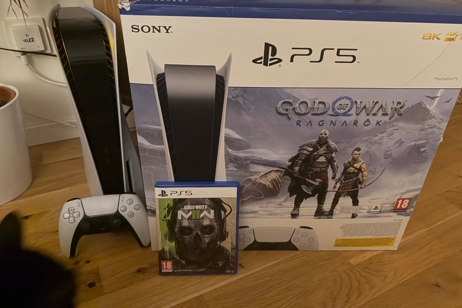 Playstation 5 disk med God of War Ragnarök och Call of Duty Modern Warfare II.