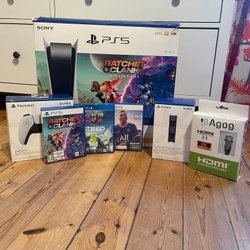 Playstation 5 disc edition med en handkontroll och Elden Ring. Sparsamt använd, allt fungerar som det ska