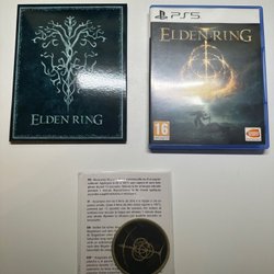 Säljer Elden Ring Launch Edition till Playstation 5. Denna utgåva innehåller spelet, en vävd patch, 3 art cards, en poster (393x334mm) och en uppsättning stickers.