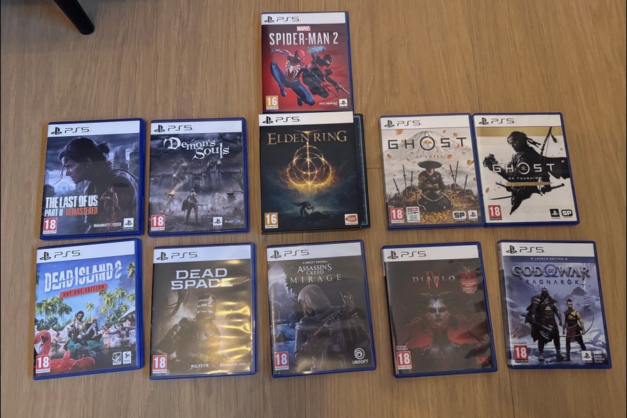 Säljer här ett paket med 11 spel till PS5. Fodralen och skivorna är i nyskick. Räknar man ett snittpris per spel blir det 272 kr styck. Vissa spel kostar mer och andra lite mindre, men totalt sett är det ett mycket bra pris – särskilt för dig som nyligen köpt en PS5 och vill ha en blandning av några av de bästa spelen till konsolen.