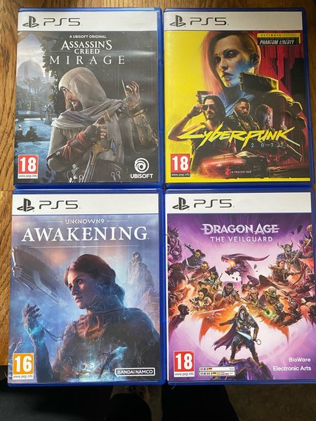 Säljer Assassin's Creed Mirage, awakening, dragonage och cyberpunk alla i fint skick skickas 1-5 dagar efter köp, väljer du instaboox som leverans val skickas varan samma dag eller nästkommande dag