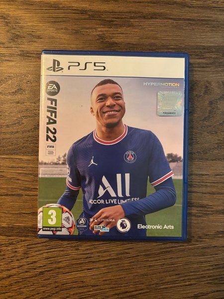 Säljer FIFA 22 till PlayStation 5. Spelet är utvecklat av Electronic Arts och har Kylian Mbappé på omslaget. Spelet har stöd för Hypermotion Technology och är ett officiellt licensierat FIFA-spel. Rekommenderad ålder är 3+ enligt PEGI. Skick enligt bild.