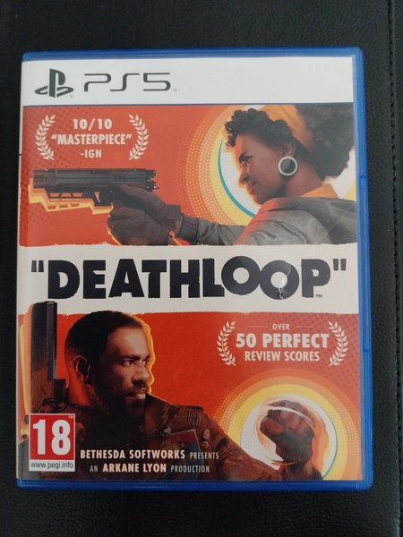 Deathloop til PlayStation 5. Spillet er udgivet af Bethesda Softworks og udviklet af Arkane Lyon. Det har fået anerkendelse som et ”mesterværk” af IGN med en score på 10/10 og har over 50 perfekte anmeldelsesscores. Aldersmærkning er 18+ ifølge PEGI.