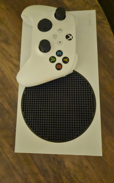 Xbox Series S med en handkontroll.