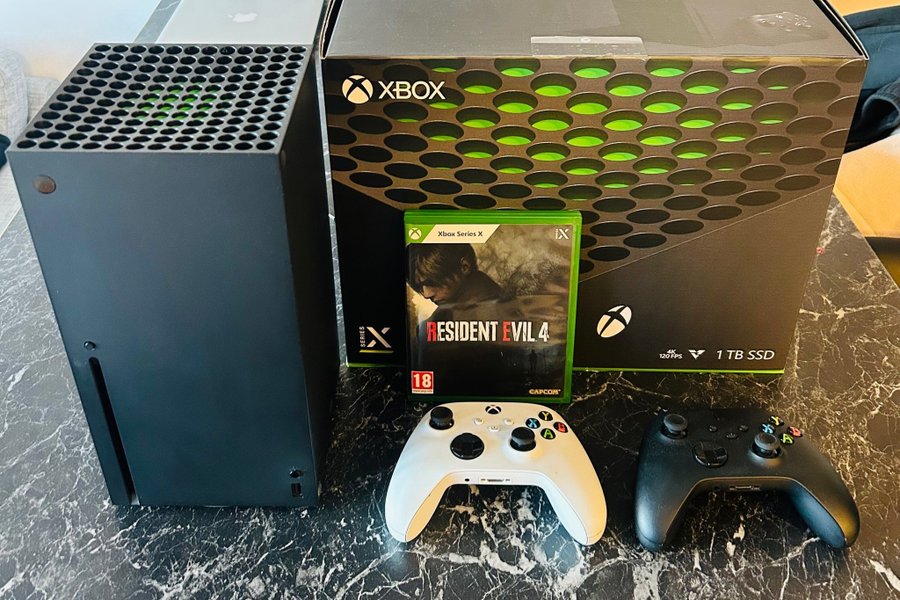 Sparsamt använt Xbox Series X konsol med Resident Evil 4.