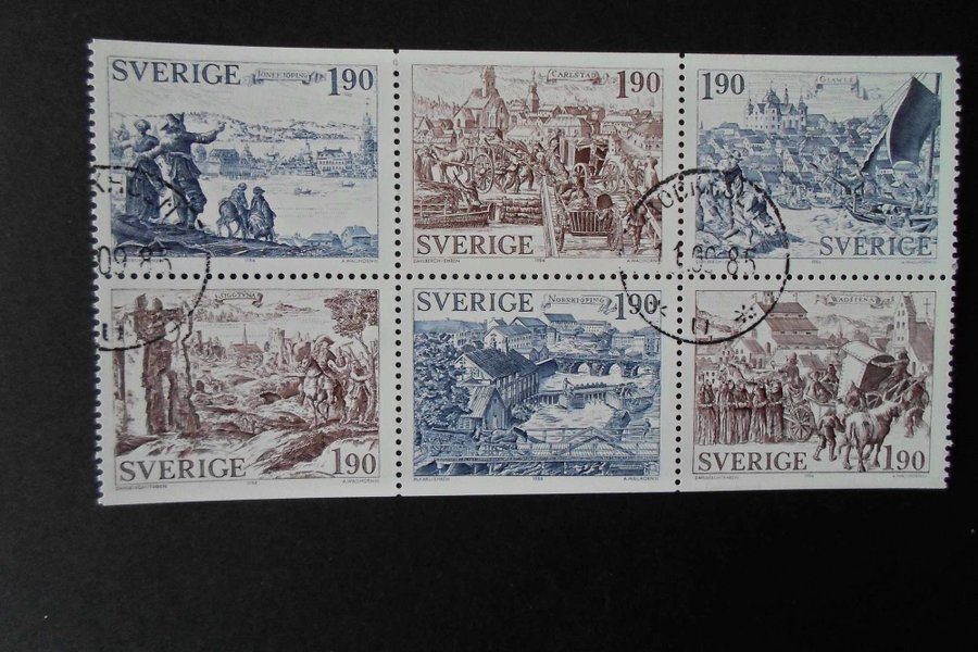 F 1311 - 1316 Häftesblock svag prakt stämpel Stockholm 11/9 85
