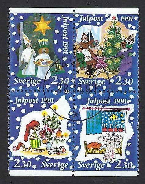 4-block av Facit 1712-13/1714-15SX, stämplat MALMÖ 1 28.11.91.