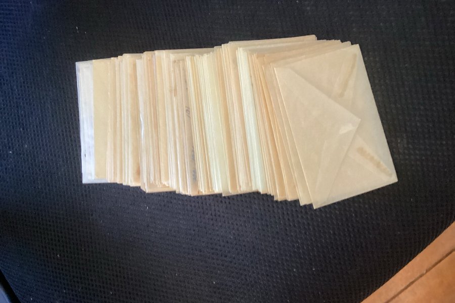 Vissa med noteringar på utsidan - vissa inte. Storlek ca. 6,5 x 9,5 cm. Antal, vet ej.