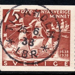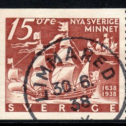 F.262C, 15 öre Nya Sverige minnet, KARLSBORG 3-9-38 [R/VG]