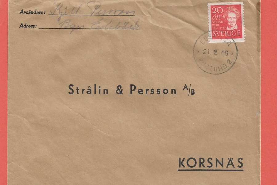 Brev EDEBÄCK POSTOMB 2 21.2.49