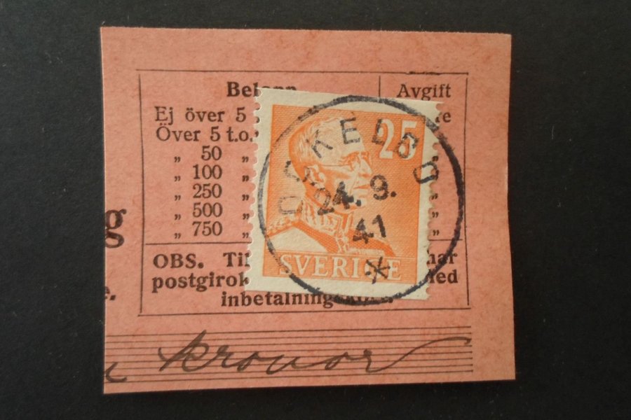 Klipp stämplad Ockelbo 24/9 41 Prakt/Lyx