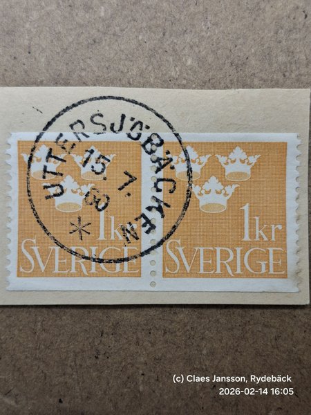 Facit 294, på klipp - stämplat UTTERSJÖBÄCKEN 15.7.60, Södermanland, B-län