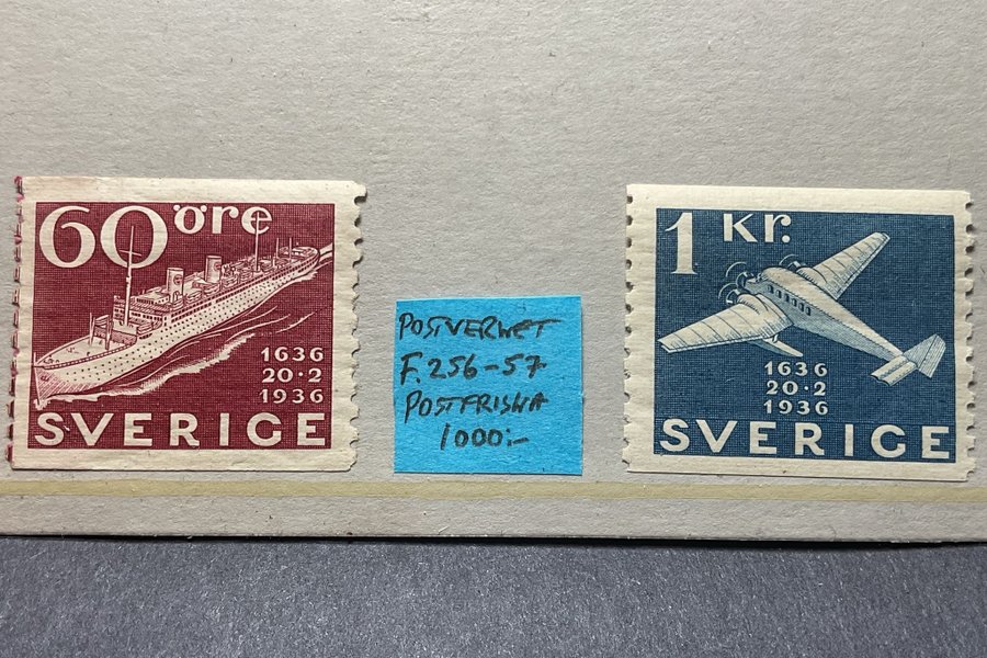 Postfriskt Postverket F.256 60 öre & F.257 1 kr (1.000:-)