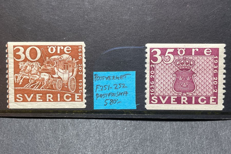 Postfriskt Postverket F.251 30 öre & F.252 35 öre (580:-)