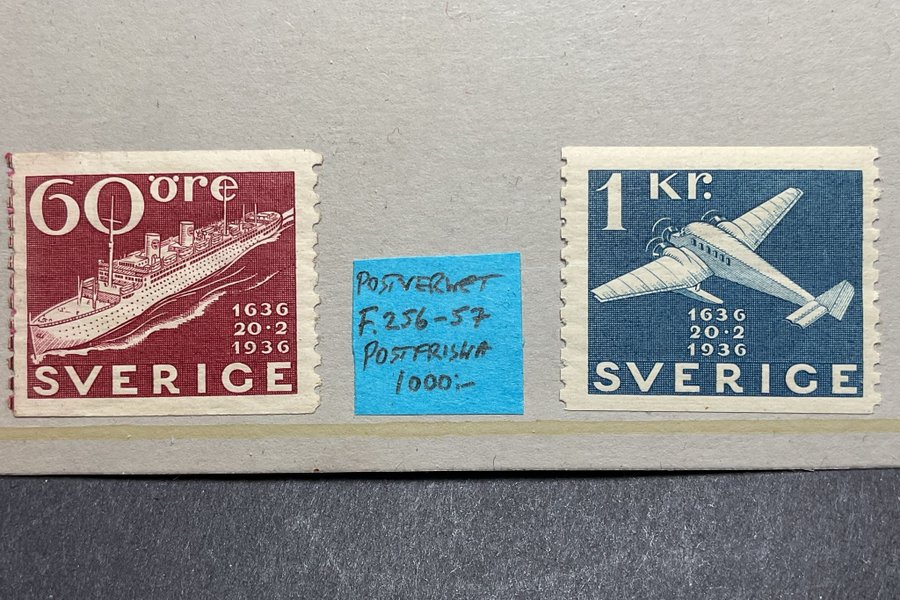 2 st postfriska Postverket 300 år 60 öre F.256 & 1kr F.257 (1000:-)