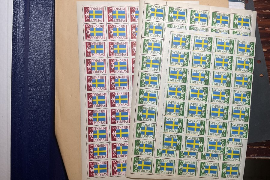 2 st 50-kartor i olika valörer Svenska flaggans dag, postfriskt såklart.