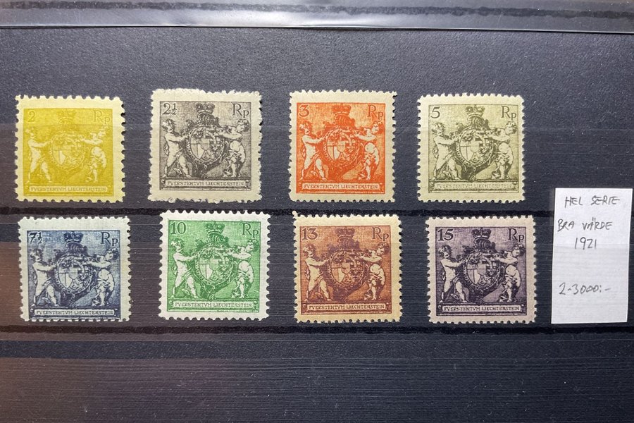Lichtenstein fina ostämplade frimärken från 1921 (2-3000:-)