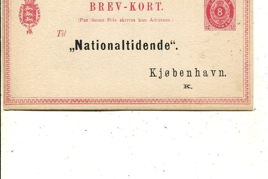 Denmark 8öre postal card, mint