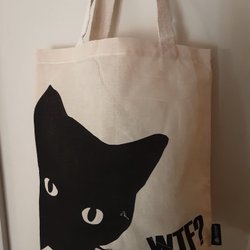 En större modell och en vändbar väska när man vill ändra färg,blir då mer ön hållbar väska den har träknapp. Mått är 49x40 den är av jute och bomull.