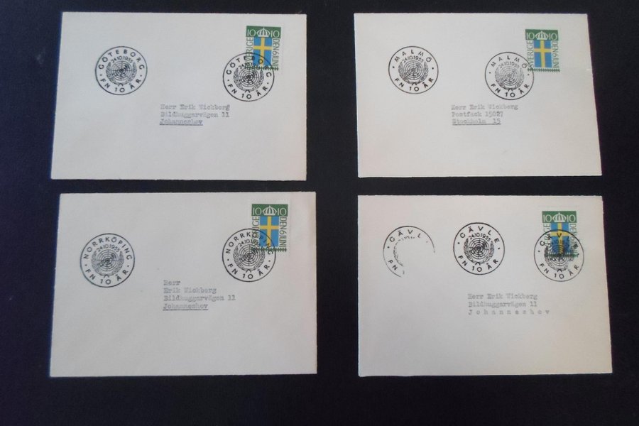 FN 10 år 1955 brev minnespoststämplade Malmö Göteborg Norrköping Gävle se bild