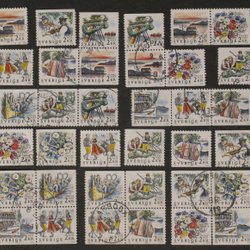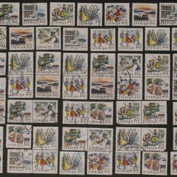 Jag har fått en rätt stor samling märken efter svärmor vet själv inte så mycket om frimärken. Jag vet inte om årtalen stämmer exakt det är efter hennes anteckningar vid insättningar i album. Jag har förstått att det är bra om man kan se baksidan också. Efter att jag fick mitt dåliga omdöme av en köpare som tyckte baksidan på ett märke av 10 hade trasig baksida så kolla även bild 2. OBS spegelvänd. Det är några som kan vara lite trasiga men lägger ändå med sådana ibland och en del baksidor kan ha spår efter inte så bra äldre fastsättningar så det kan vara en del rester efter lim och pappersrester så kolla noga kvalitet före ni budar.