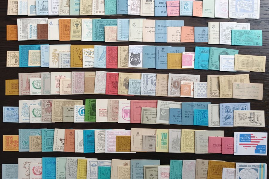 140 postfriska häften enligt bild. Inga markeringar finns i häftena. Något varierande kvalitet, blyertsnoteringar finns på vissa omslag.