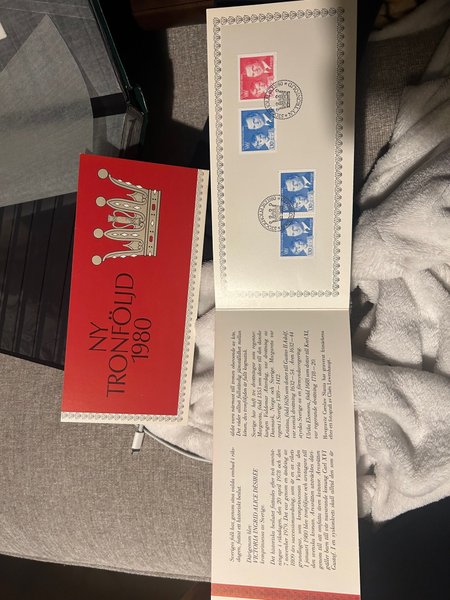 Detta är ett svenskt minnesbrev från 1980, utgivet för att fira den nya tronföljden när prinsessan Victoria blev tronföljare