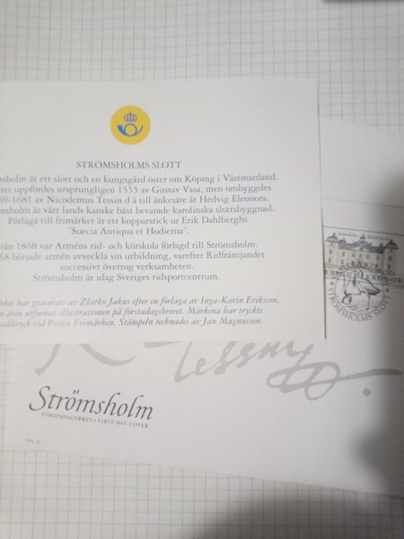 Förstadagsbrev Strömsholms Slott 1991. 1 märkea 10. Stämplat 27/8/1991