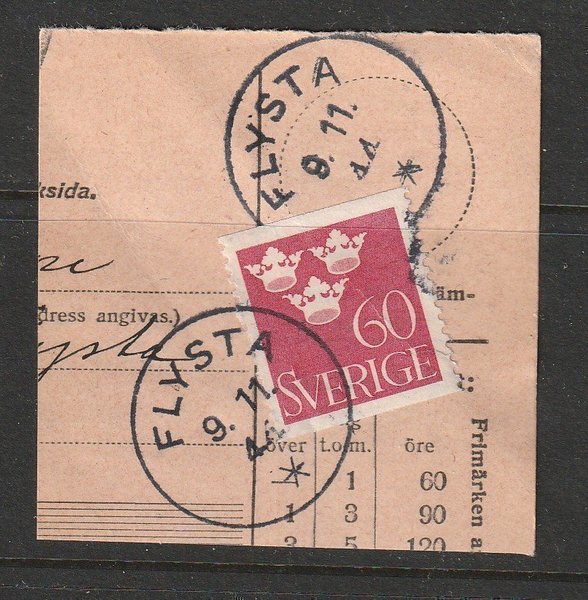 STÄMPEL FLYSTA (A7U)9.11.44 (SENARE SPÅNGA3). OVANLIG. 50 KR I POSTAL.