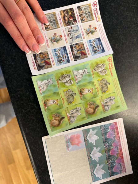 Hjärt Lungfonden klistermärken. Hjärt lungfonden gav tidigare ut God Helg märken. (Julfrimärken)