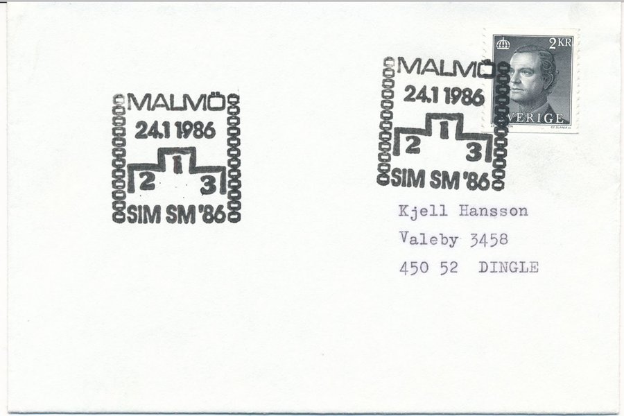Försändelse med Minnespoststämpel Malmö Sim SM 1986