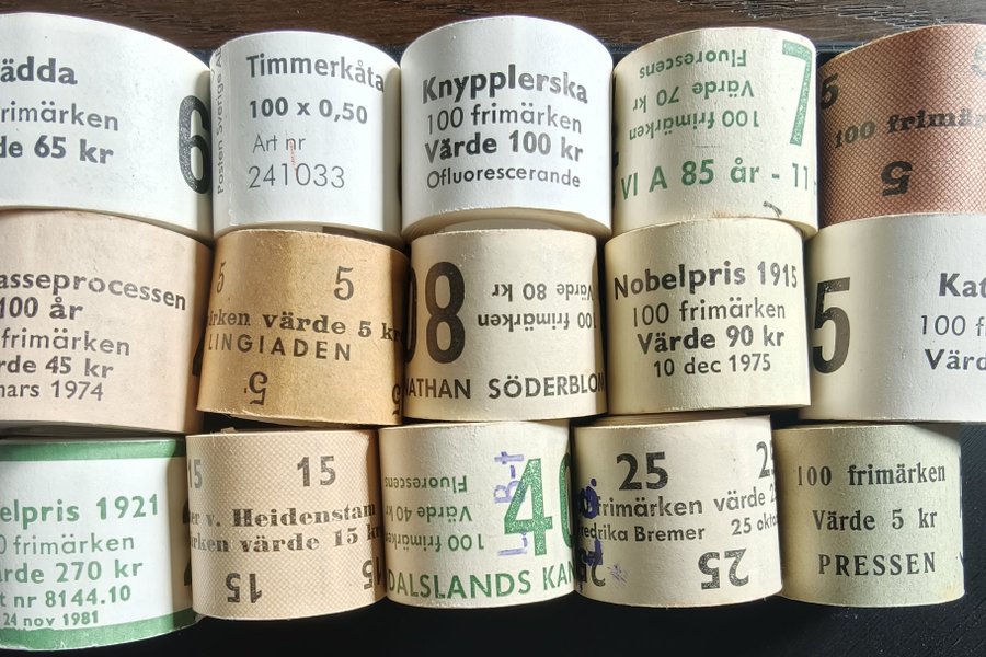 15 postfriska rullar i varierande kvalitet. Se bilden.
