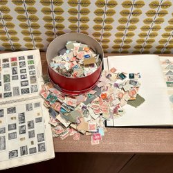 En samling frimärken.