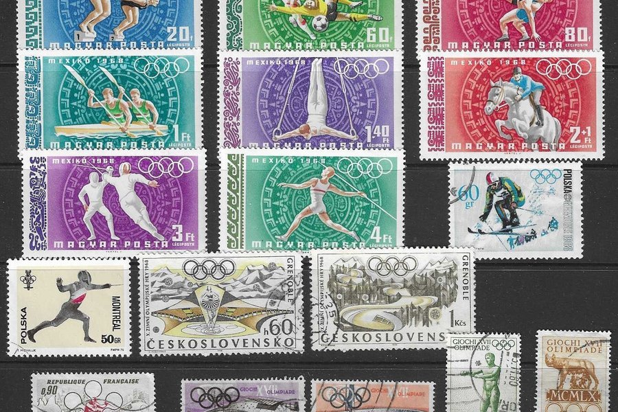 Postfriska och stämplade märken enligt bild för OS Rom 1960, Grenoble/Mexiko 1968, Sapporo 1972 samt Montreal 1976.