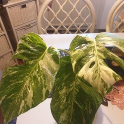 bra pris hs även monstera variegata albo ute en topp med ett 3dje blad på väg fin variegering ute mmm