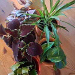 zebrablad,dracena, palettblad och penningträd.
