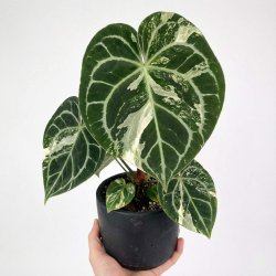 Variegata-formen är en odlad selektion eller mutation där bladen har ljusare partier, ofta krämvita eller ljusgröna, som kontrasterar mot den mörkgröna till nästan svarta bladytan. Detta gör den betydligt mer sällsynt och känsligare än den gröna grundformen.