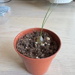 Schizobasis Intricata odlad ifrån fröer ifrån etsy. Kommer från Sydafrika, är torktålig och väl lämpad för ljusa inomhusutrymmen. Den trivs i en väldränerad jordblandning och föredrar lätt, sällan vattning när den väl etablerat sig . Tillväxten är långsam men fascinerande, vilket gör den till ett utmärkt val för tålmodiga odlare och entusiaster av sällsynta växter.