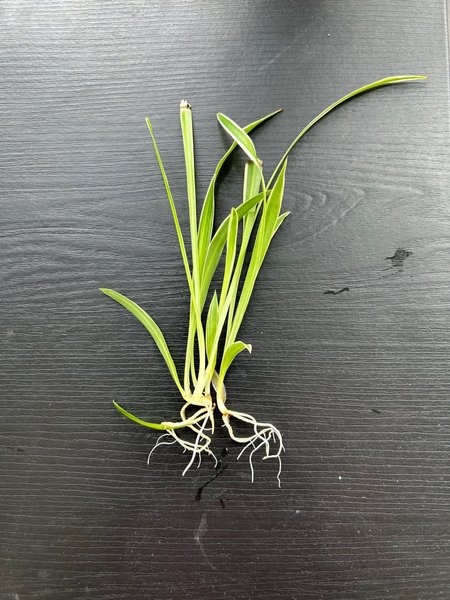 Ampellilja stickling med rötter. Plantera sticklingen i en kruka med jord.
