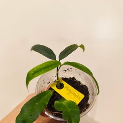 Orotat skott av Hoya Decipulae (2 nod med 4 blad) till salu. Det syns tydligt i bild 1. Jag kommer att klippa precis innan jag skickar den iväg. Bild 4 visar moderplantan (ej till salu). Bild 5 visar hur blomman ser ut.