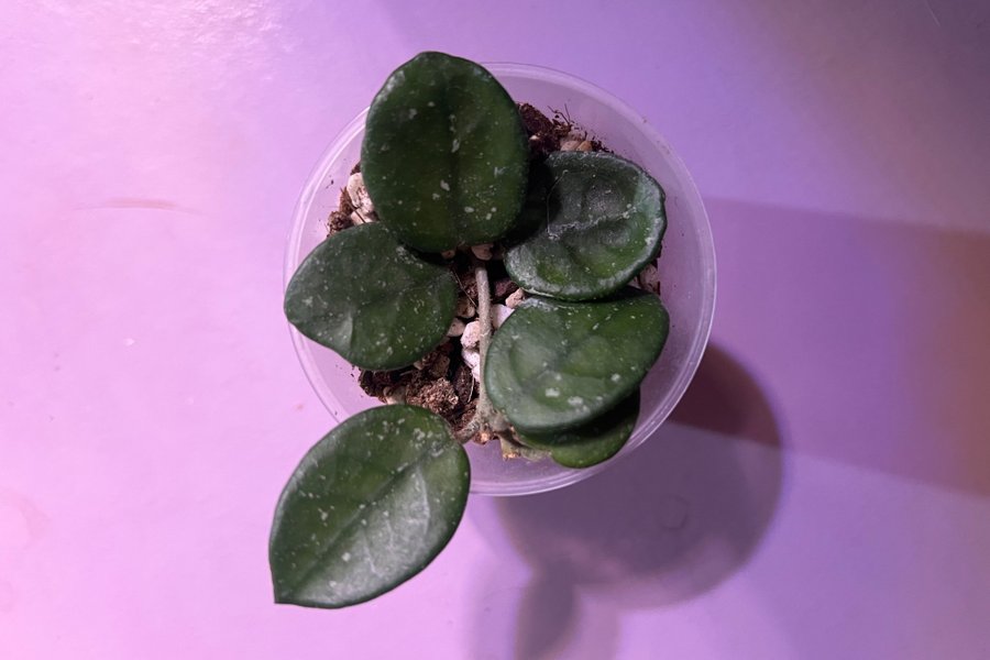 Hoya Mathilde är en korsning mellan Hoya carnosa och Hoya serpens. Bladen är små, runda och mörkgröna med silverstänk. Denna hoya är rotad i barkmix.