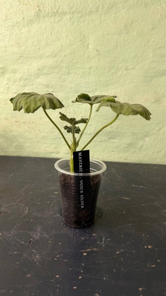 Pelargon Maverick Quicksilver. Växten levereras i plastkruka.