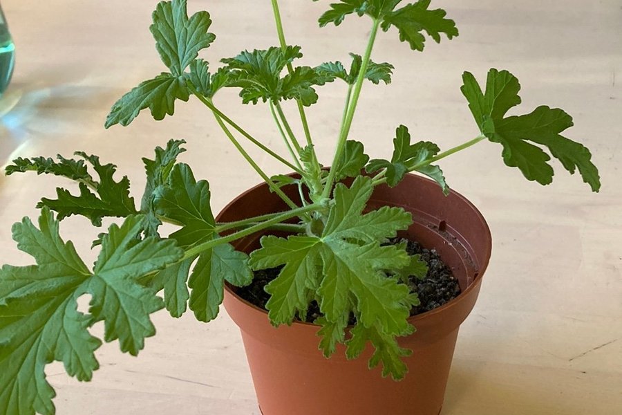 Doftar ljuvligt! Bladen har en frisk grön färg och är flikiga. Ca 15 cm hög. Pelargonen är planterad i en brun plastkruka. Får rosa söta små blommor. Samfraktar. Postar sön- onsdag för att undvika att plantan blir liggande över helgen.