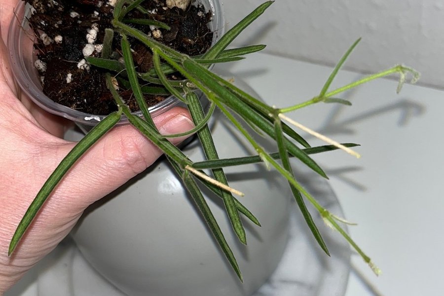 Hoya Linearis stiklinger med rødder.