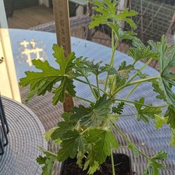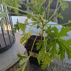 Doftpelargon Dr Westerlund i enkel kruka. Plantan är cirka 25 cm .