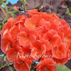 Pelargon med rosa blommor och gröna blad. Växten har en etikett från Arvidssons i Fjärås AB.