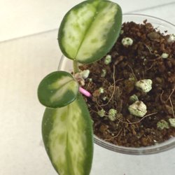 Hoya Mathilde en vacker Hoya med mörkgröna, hjärtformade blad som får en mörkare nyans vid exponering för starkt ljus. Bladen är små och har silverstänk. Denna Hoya är en lättskött växt som passar bra för både nybörjare och erfarna växtentusiaster.