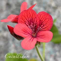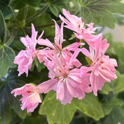 Pelargon med knoppar. Planteras om för fortsatt tillväxt.