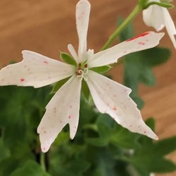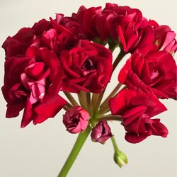 Så vacker denna rosenpelargon är med sina purpurfärgade blommor med ljusare baksida på kronbladen.