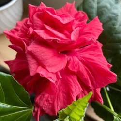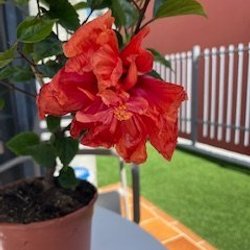 En stickling av en röd dubbelblommande hibiskus